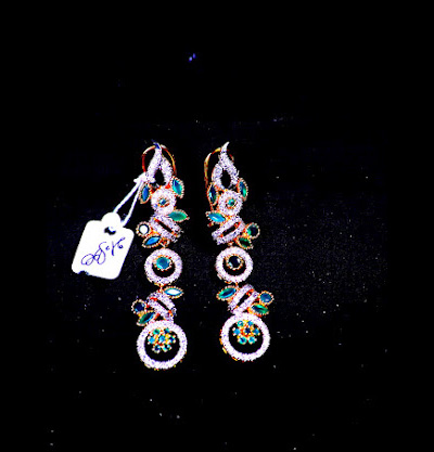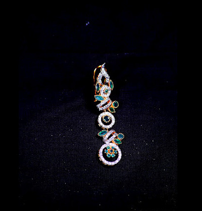 Eyelet Sterling Silver, Zircons and Jade peacock drop down earrings.