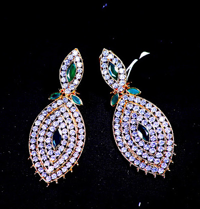 Marquee style classic Silver sparkling Zircons and Jade drop earrings